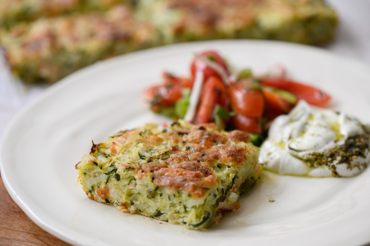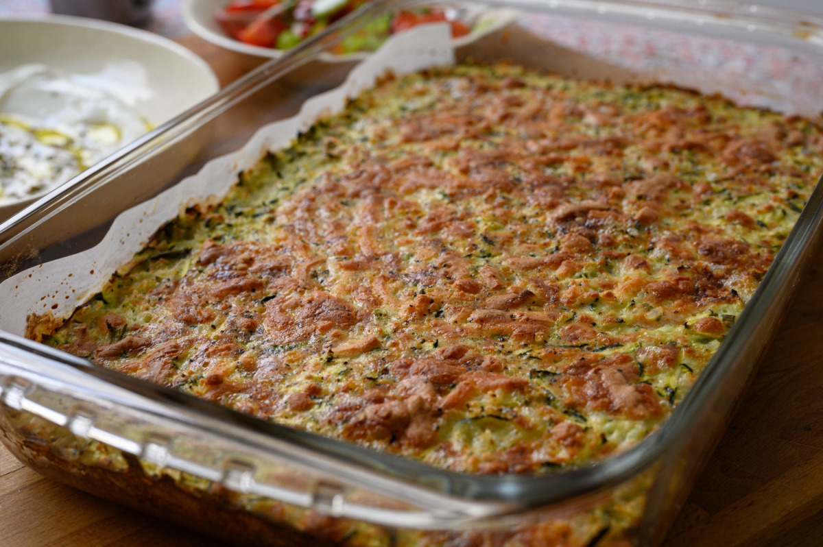 1. בקערה נערבב יחד חלב, ביצים,יוגורט, כוס גבינה מגוררת, נוסיף זוקיני, בצל ירוק, עירית, בצל סגול, אורז, שמן זית, קוביות סלמון, כף שמיר קצוץ/נענע, גרידת לימון, מלח פלפל, שום כתוש, נערבב היטב