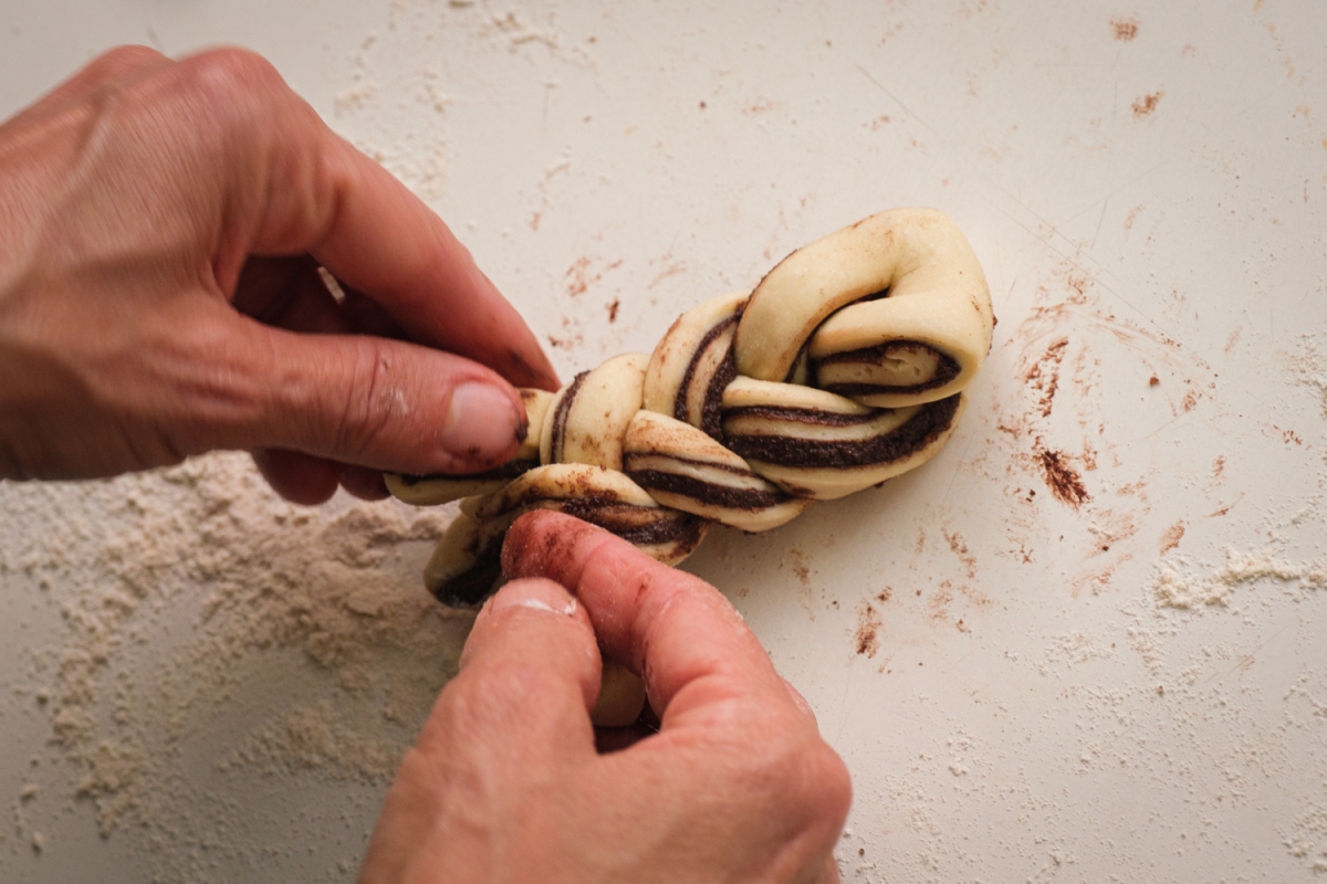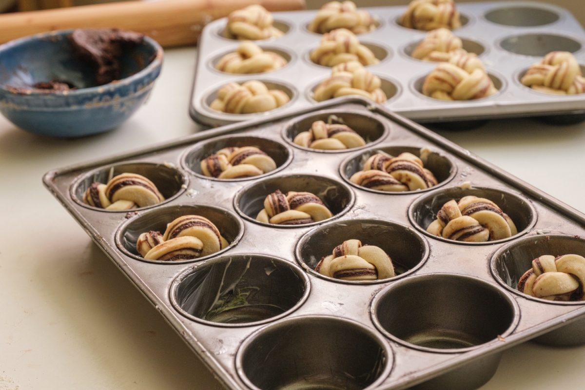 כמה משמחת הדרך בהכנת צמות השמרים האלה, הן מתוקות במידה מדוייקת, אני מאוהבת בבצק שמרים יוגורט. המאפה הזה דורש התפחה במקרר ואז העבודה כל כך נעימה וכייפית. אין חובה בתבנית שקעים, אפשר תבנית תנור רגילה בהחלט. אני מחלקת את הבצק לשניים: חצי מהמאפים עם קינמון וחצי עם שוקולד. וין וין סיטואציה