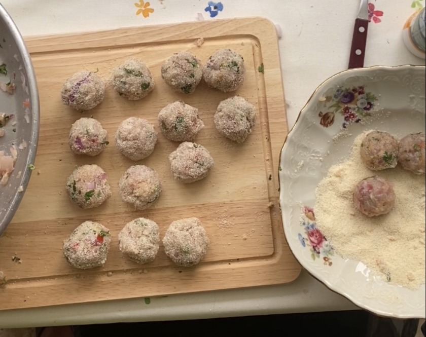 3. הרכבת הסיר: נצפה קציצות בפירורי לחם או סולת ממולחים, הקציצות הכי טעימות כשהן ממש קטנות בגודל מסטיק עגול, או גדולות יותר בגודל כדור פינג פונג, הן רכות אבל לא מדי, נצפה בפירורים, נעצב היטב עם הידיים את כולן ואז נסדר יפה יפה בסיר.