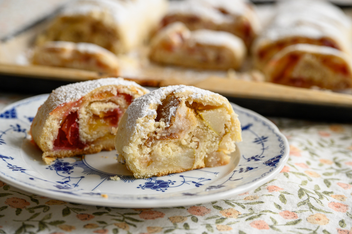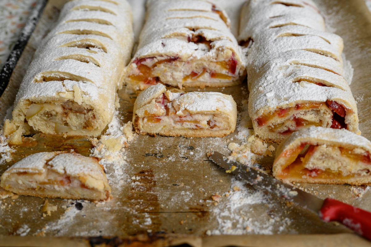 העוגות האלה הן עוגות ילדותי. אמא שלי שהיתה מנצלת את הפירות עד תום, אם לא נאכלו הפכו לריבה או קומפוט או עוגות פרי. ורולדות פרי הן האהובות עלי ביותר