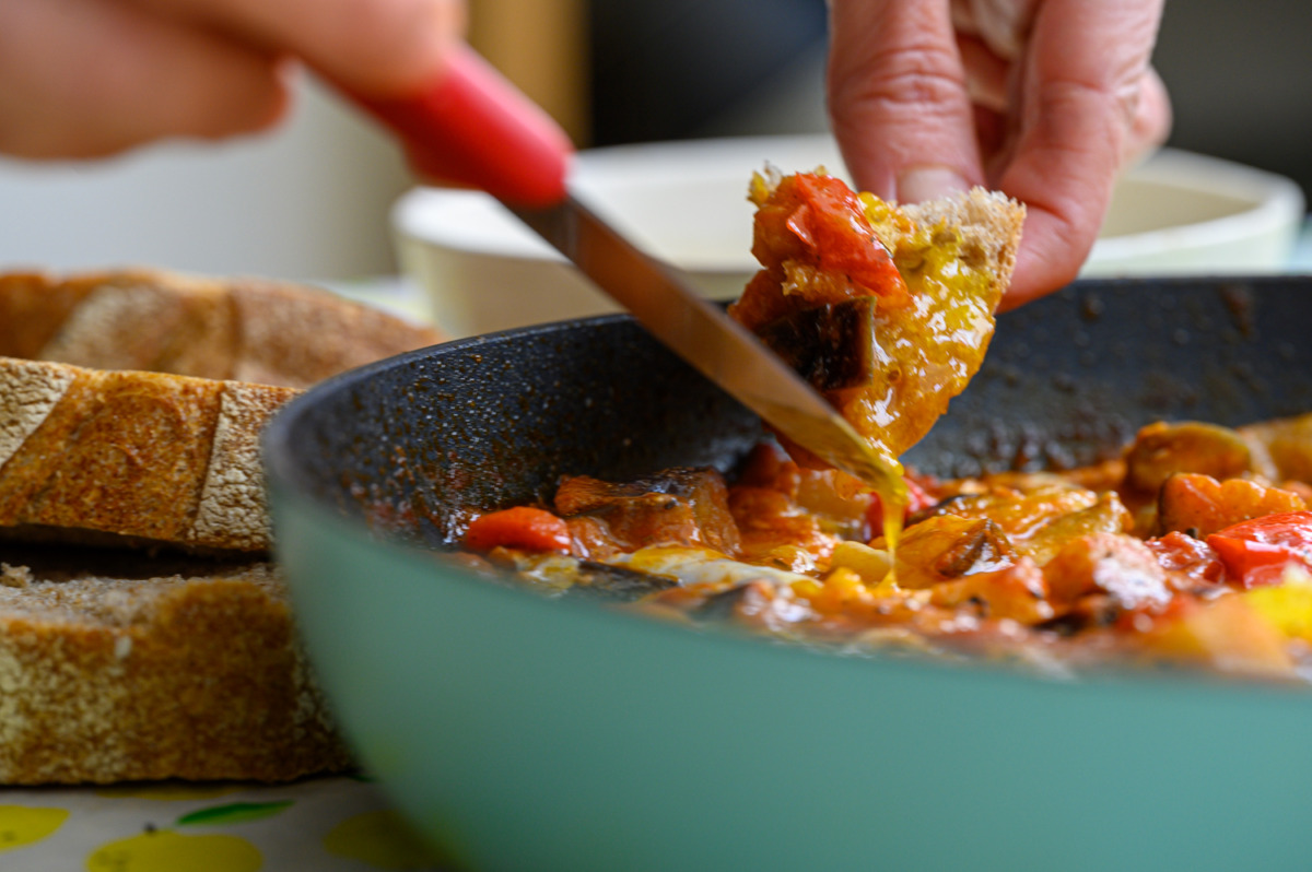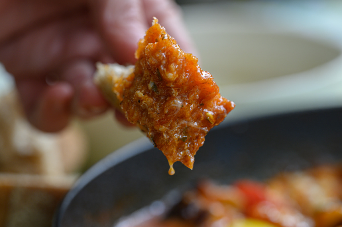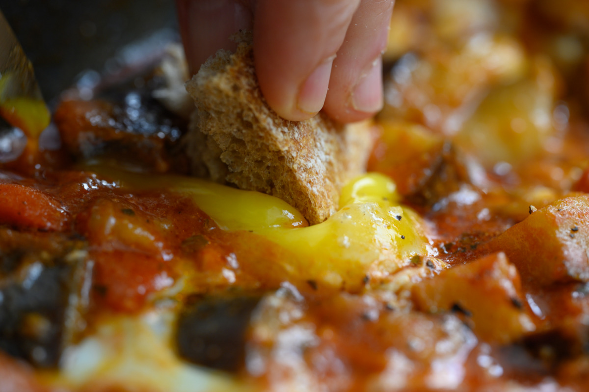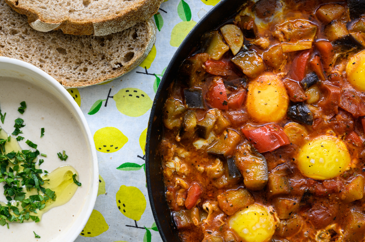 שקשוקה ים תיכונית עם לחם שיודע לספוג את כל הרגש שהשקשוקה מוציאה ממנו