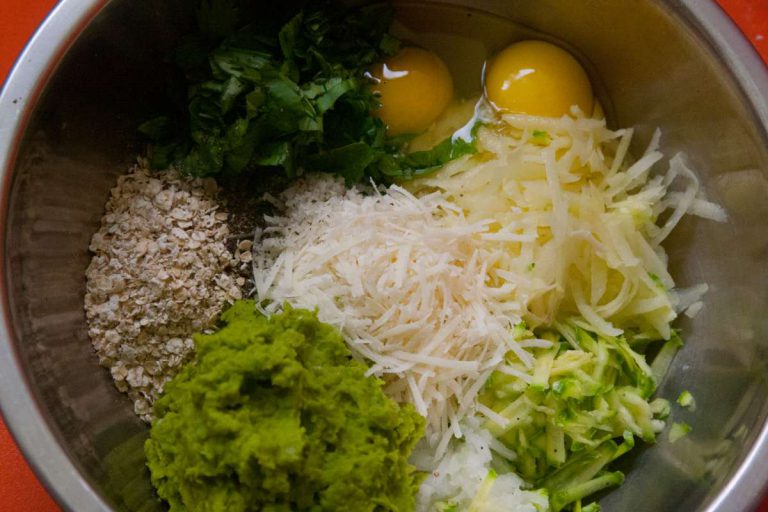 כמה זה יפה? הקווקאר, תפוח אדמה, קישוא, בצל, פרמז’ן, מחית האפונה.