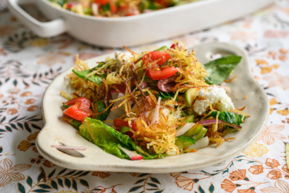 סלט שוק עם מוצרלה וגפרורי צ’יפס