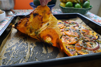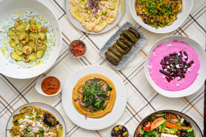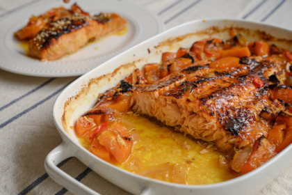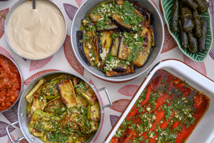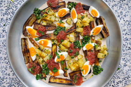 סלט נמס של חציל ופלפלים עם טחינת בלסמי