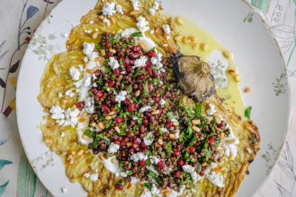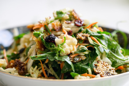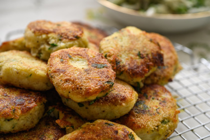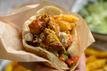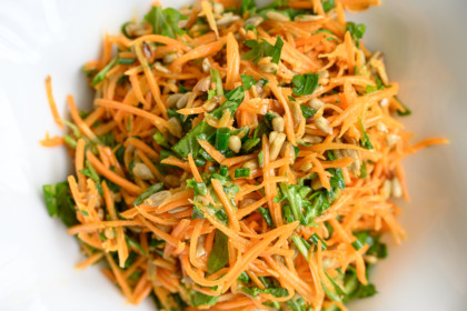 מקלובה צ’יפס עם פרגיות אפונה וגזר