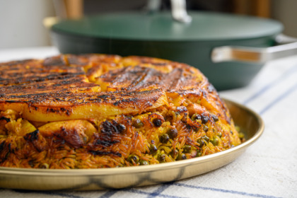 סיר אורז פרסי עם תחתית קציצת פראסה