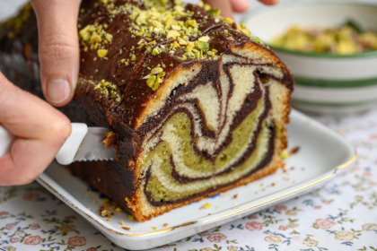 עוגת רטרו עם שוקולד, פיסטוק וניל