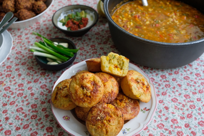 מרק עם טעמים של מקסיקו ומאפינס תירס של המיד ווסט