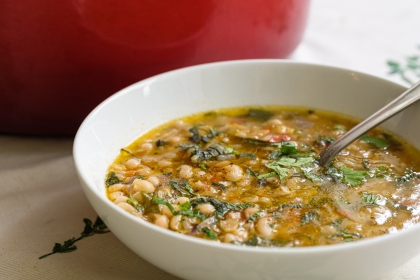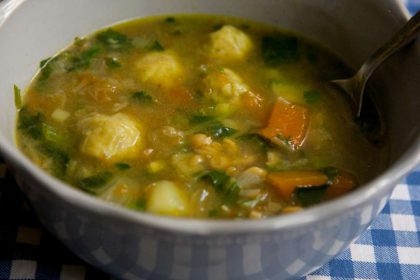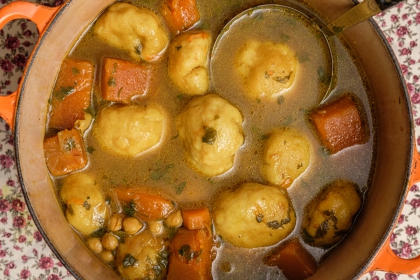 מרק חומוס, מנגולד דלעת ובצקניות כוסברה