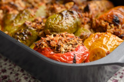 עוף צבעוני בפלפלים