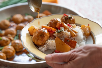 הרקולסים. קציצות ברוטב אדום עם פירה.